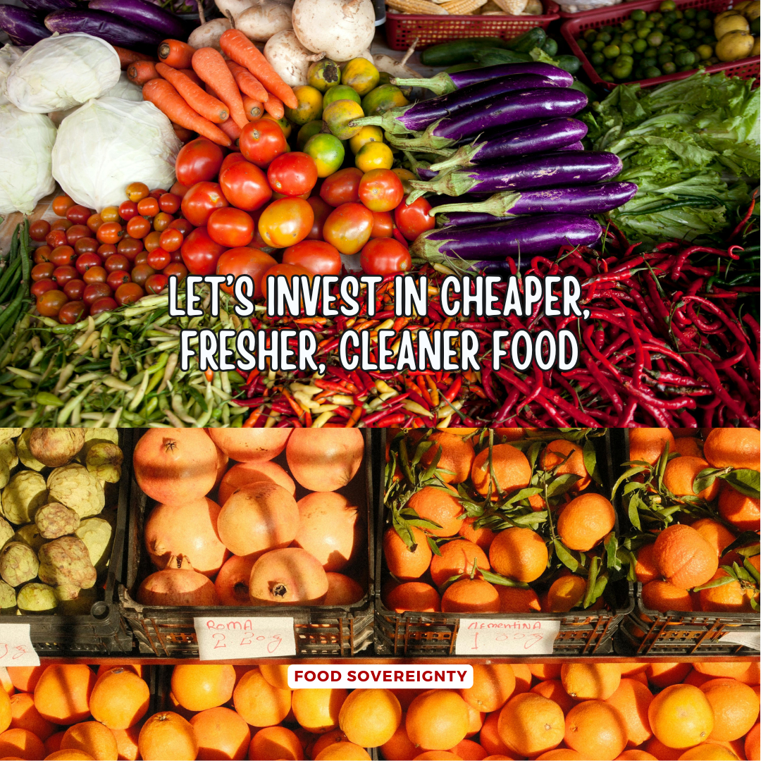 It is time to diversify how we grow, produce, and supply fresh food. I am calling for public investment in locally grown foods that are fresh, clean, and regenerative towards the land.